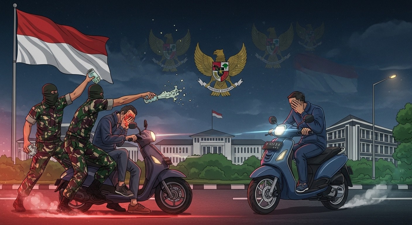 L’affaire a débuté dans la soirée du 12 mars 2026. Andrie Yunus, coordinateur adjoint au sein du groupe KontraS dédié à la défense des droits humains, venait de conclure l’enregistrement d’un podcast. Il critiquait ouvertement les efforts visant à renforcer le rôle de l’armée dans les affaires gouvernementales.