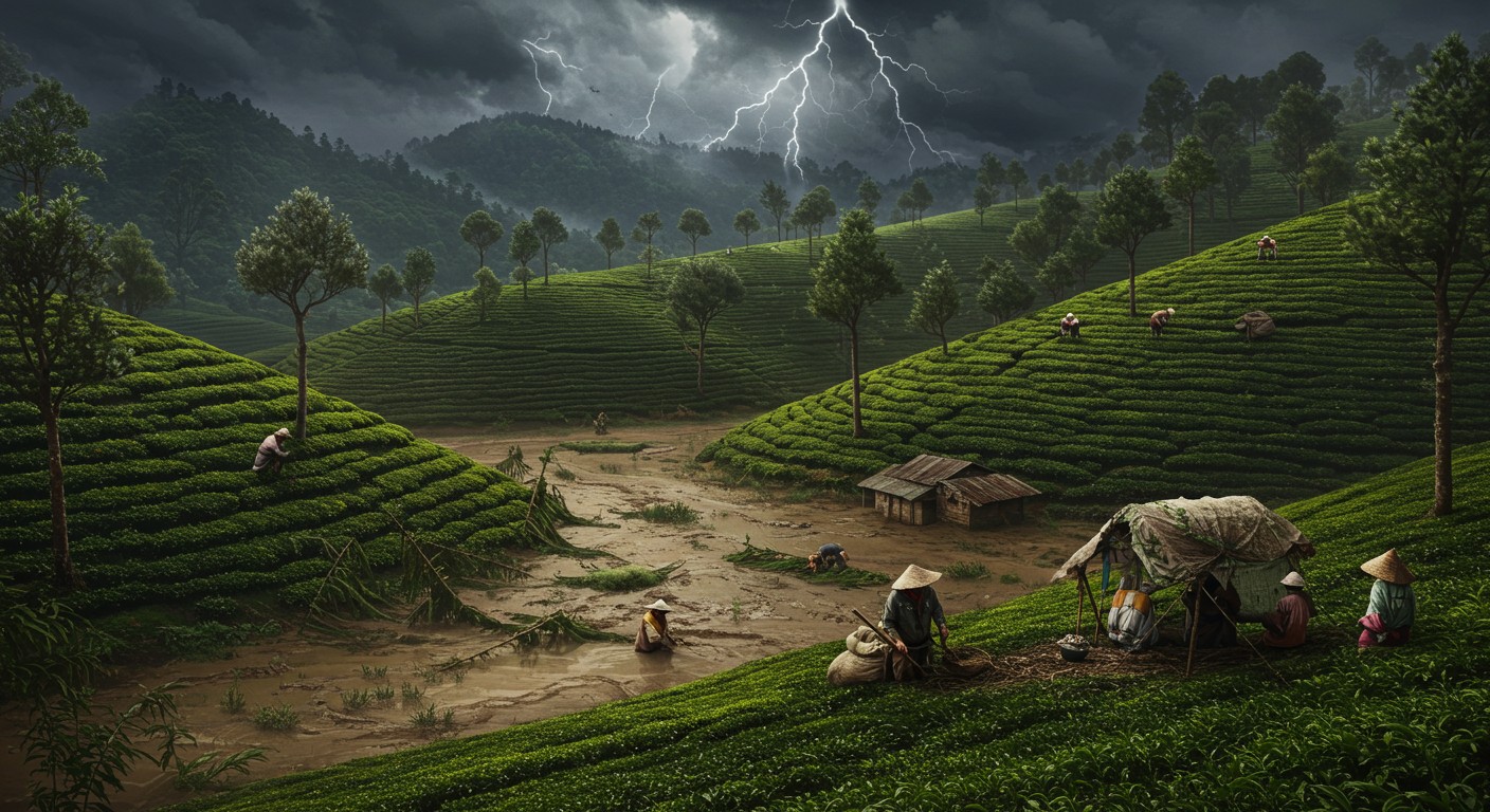 Le drame ne se limite pas aux pertes agricoles. Les autorités locales ont rapporté un bilan tragique d’au moins 36 décès, avec plusieurs personnes toujours portées disparues. Les glissements de terrain, déclenchés par des précipitations record de plus de 261 mm en une seule journée, ont ravagé des villages entiers. Les habitants, souvent dépendants de l’industrie du thé pour leur subsistance, se retrouvent aujourd’hui face à une double crise : la perte de proches et la destruction de leurs moyens de subsistance.