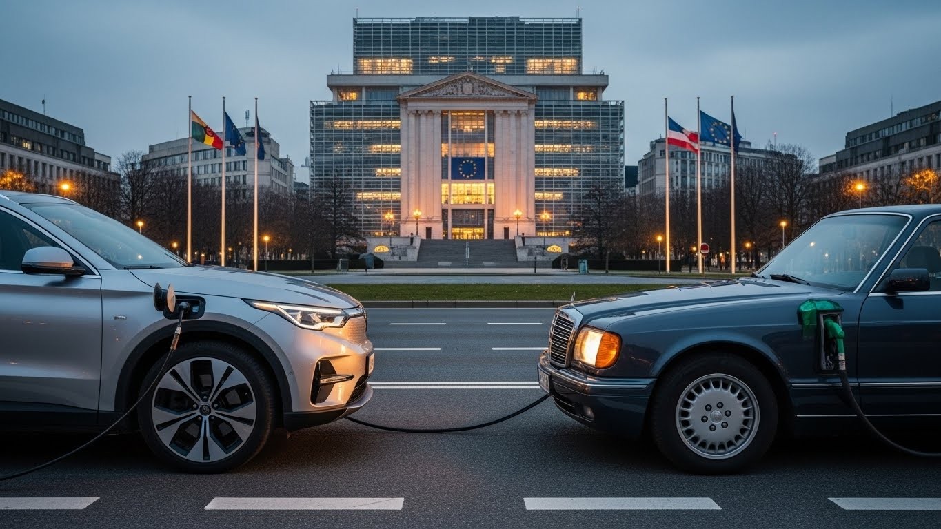 Retour en 2023. Après d’âpres négociations et un veto surprise de l’Allemagne à la dernière minute, l’Union européenne adopte l’une des mesures les plus ambitieuses de son Green Deal : à partir du 1er janvier 2035, plus aucune voiture neuve émettant du CO₂ en roulant ne pourra être vendue sur le territoire européen.