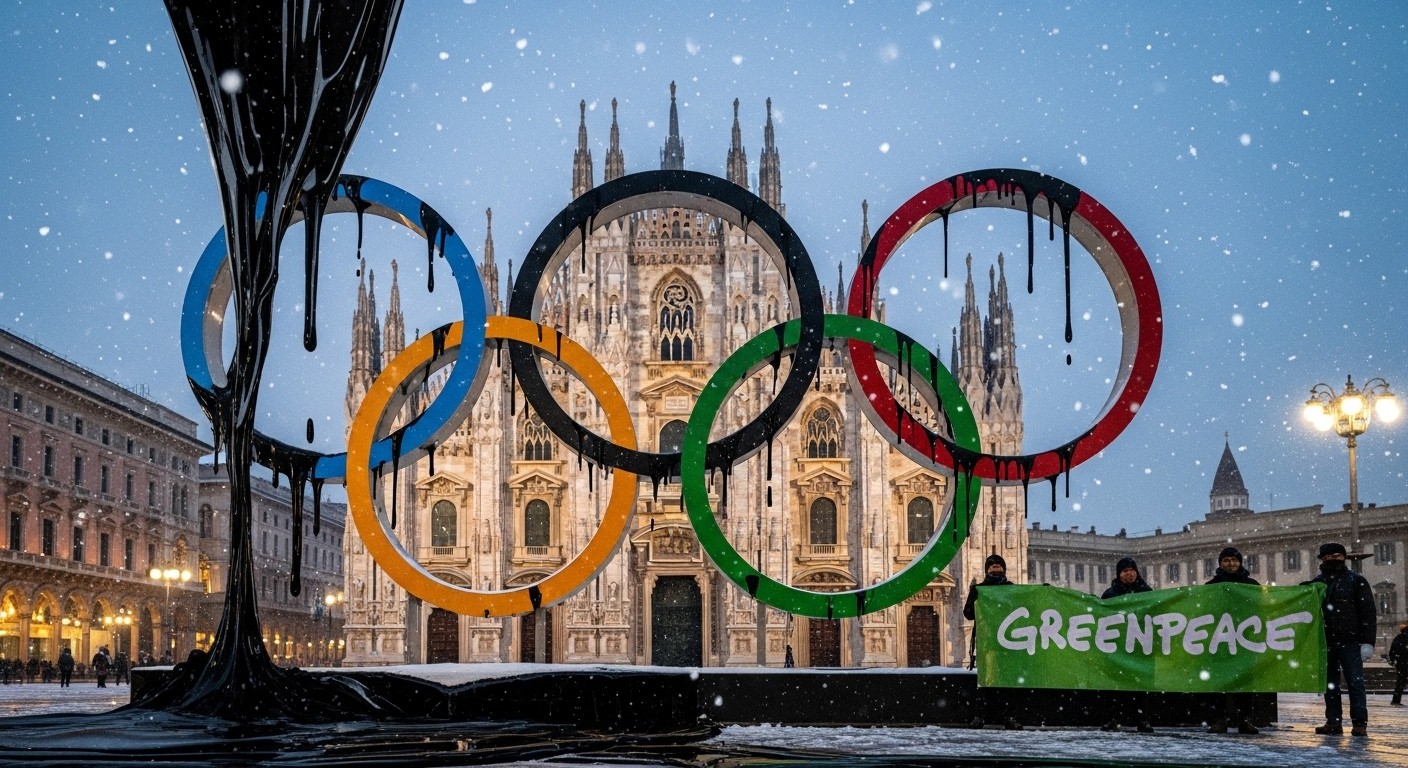 Imaginez une place emblématique de Milan, la veille d’un événement sportif planétaire, soudain envahie par des anneaux olympiques noirs de pétrole. C’est exactement la scène qu’ont créée des militants de Greenpeace jeudi, transformant le symbole universel du sport en un puissant message d’alerte sur le climat. Cette action directe vise directement le parrainage des Jeux olympiques d’hiver Milan-Cortina 2026 par une grande compagnie énergétique.