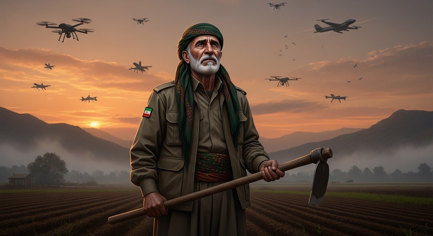 Imaginez un homme de 58 ans, encore vêtu de l’uniforme kaki des combattants kurdes, la vareuse ajustée et le foulard traditionnel noué à la taille. Au lieu de porter une arme, il tient une pioche et travaille sa terre aride. C’est la réalité quotidienne de nombreux habitants du Kurdistan irakien en ce moment précis où le ciel s’illumine de drones et d’avions de chasse. Une guerre fait rage non loin, mais pour eux, elle reste étrangère, douloureuse et surtout redoutée.