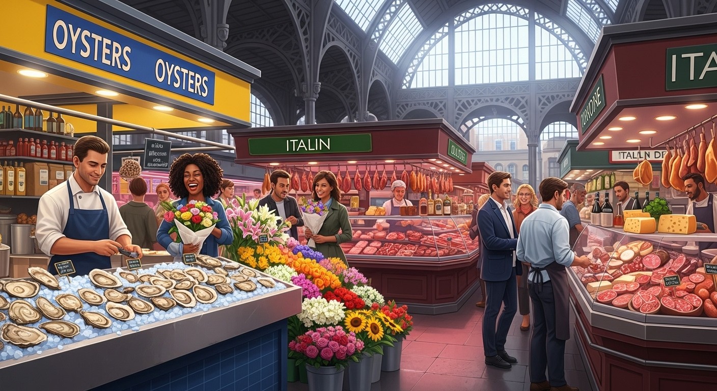 Avant de trancher pour un marché couvert, plusieurs idées ont circulé en interne : une grande salle de sport où les corps se frôlent, un institut de beauté propice aux confidences, un espace culturel polyvalent… Mais aucune ne permettait autant de fluidité narrative.