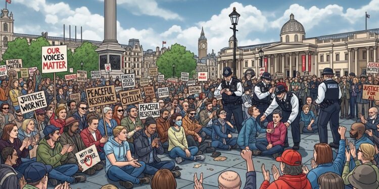 Le rassemblement de Trafalgar Square reste gravé dans les mémoires comme un moment de résistance calme mais déterminée. Face à une interdiction maintenue, les participants ont choisi de ne pas se taire.