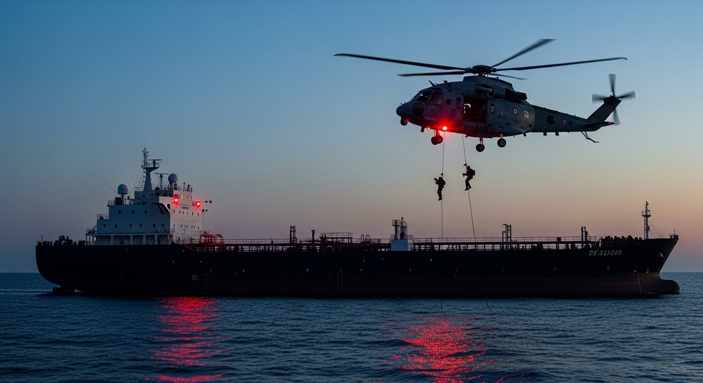 Imaginez un immense navire-citerne glissant silencieusement sur les eaux turquoise de la Méditerranée, loin des regards indiscrets. Soudain, le bruit des rotors déchire l’air : un hélicoptère militaire français se positionne au-dessus du pont, des cordes tombent, des silhouettes en tenue d’intervention descendent rapidement. Ce scénario n’est pas tiré d’un film d’action, mais bien de la réalité récente en mer Méditerranée.