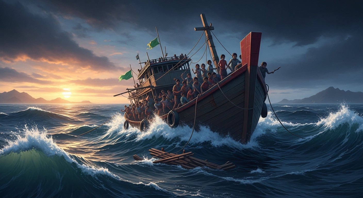 Imaginez un instant l’océan déchaîné, les vagues qui frappent sans relâche une embarcation déjà fragilisée par le poids de trop d’espoirs. Au milieu de cette fureur naturelle, des familles entières, des enfants aux yeux remplis d’incertitude, tentent de fuir une réalité insoutenable. C’est précisément ce scénario qui s’est déroulé récemment en mer d’Andaman, où un bateau transportant des réfugiés a sombré, laissant derrière lui un vide immense et douloureux.