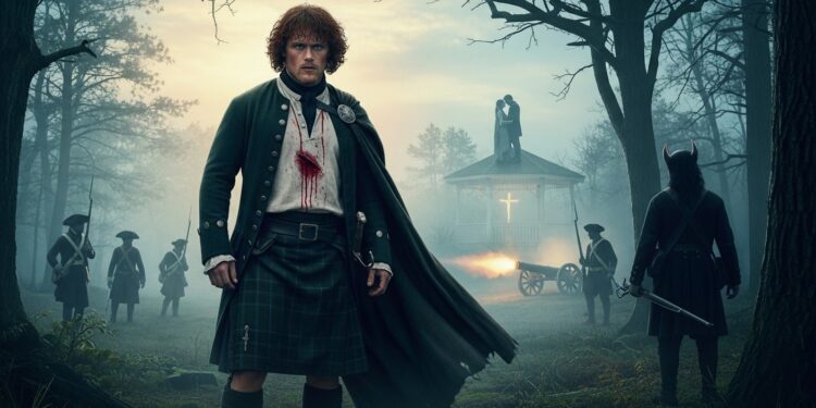 Là, le capitaine Cunningham, animé par une ambition dévorante et une croyance étrange en une prophétie le protégeant, tente de poignarder Jamie. La scène est d’une intensité rare : le Highlander, blessé à la poitrine, parvient pourtant à riposter avec une réplique mémorable inspirée de Claire. Mais c’est finalement un allié inattendu qui sauve la situation d’un coup de feu précis tiré dans le dos de l’agresseur.
