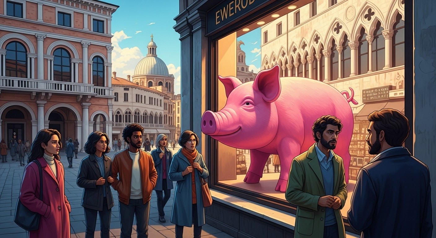 Padoue : Figurine de Cochon en Vitrine Divise la Ville