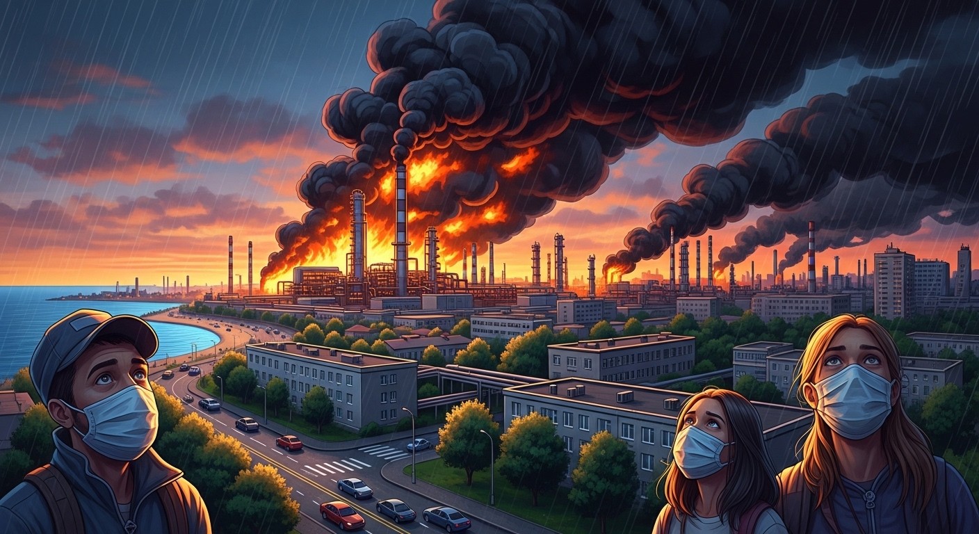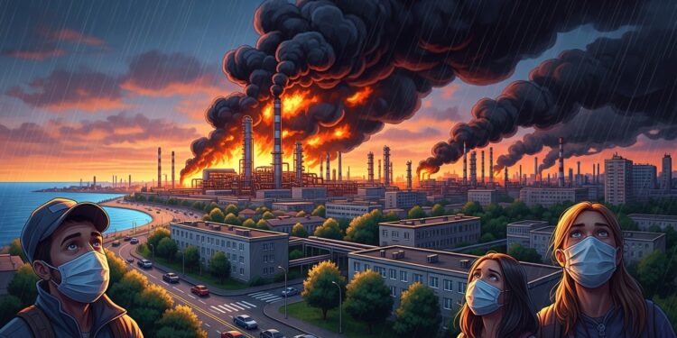 Imaginez une ville paisible au bord de la mer Noire soudainement plongée dans une atmosphère suffocante, où la pluie elle-même se transforme en un voile sombre et collant. C’est la réalité à laquelle font face les habitants de Touapsé depuis plusieurs jours, après qu’une raffinerie locale ait été touchée par une frappe.
