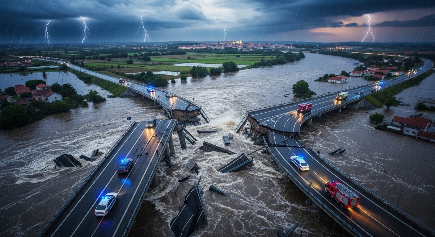 Les images diffusées montrent un spectacle impressionnant : un tronçon entier d’autoroute qui s’effondre, emporté par des eaux furieuses. Cet événement n’est pas isolé, il s’inscrit dans une série d’épisodes météorologiques extrêmes qui frappent le pays depuis plusieurs semaines.