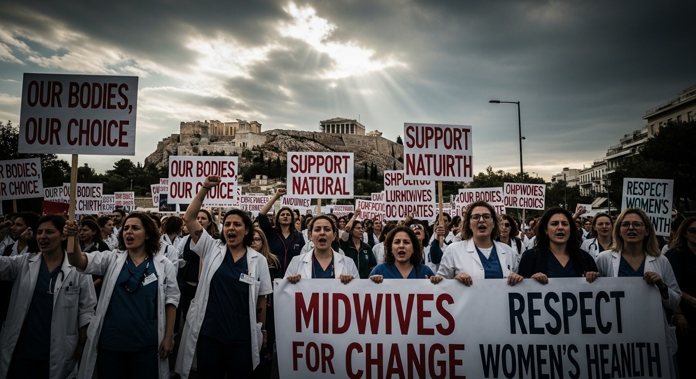 Jeudi, les rues d’Athènes ont résonné des voix de professionnelles de la santé qui refusent de voir leur rôle réduit à celui d’assistantes. Ces femmes, souvent en première ligne pour accompagner les futures mères, protestent contre une mesure qui les empêche d’assurer seules les accouchements physiologiques dans les établissements de santé publics. Pour elles, cette interdiction représente bien plus qu’une simple réglementation : c’est une remise en cause de leur expertise et des choix des femmes en matière de naissance.
