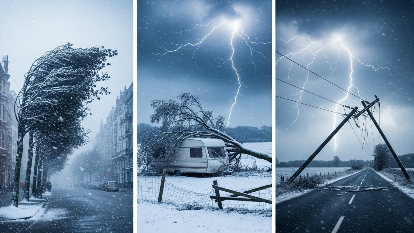 Le passage simultané de deux phénomènes météorologiques majeurs a frappé plusieurs nations du nord-ouest de l’Europe. La première, nommée Goretti, a déferlé avec des vents violents sur les côtes atlantiques, tandis que la seconde, baptisée Elli en Allemagne, a apporté une couche importante de neige et de verglas sur les régions septentrionales.