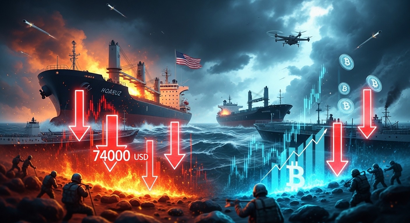 Imaginez un instant : le Bitcoin, cet actif numérique souvent présenté comme une valeur refuge, vacille soudainement face à des événements qui se déroulent à des milliers de kilomètres, dans les eaux chaudes du détroit d’Ormuz. Ce lundi 20 avril 2026, la cryptomonnaie vedette a brièvement franchi la barre des 74 000 dollars à la baisse, entraînée par des tensions géopolitiques renouvelées entre l’Iran et les États-Unis. Une saisie de navire, des frappes de drones et de missiles, et des pourparlers de paix qui s’évaporent : voilà le cocktail explosif qui secoue aujourd’hui les marchés financiers mondiaux.