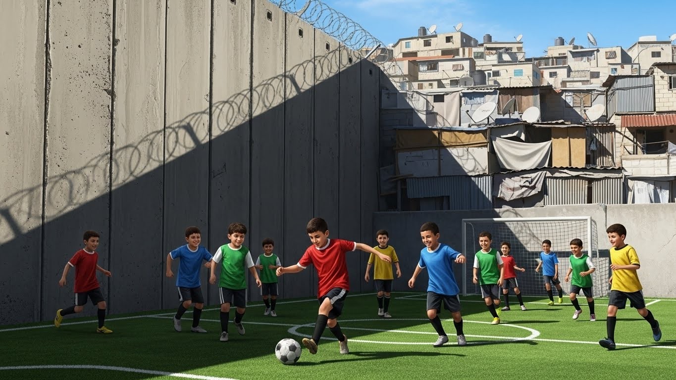 Imaginez un instant : des enfants qui courent après un ballon, leurs rires résonnant dans l’air, oubliant pour un moment les murs qui les entourent. C’est la scène quotidienne sur un petit terrain de football synthétique dans le camp de réfugiés d’Aïda, près de Bethléem. Pourtant, cet espace de joie et d’évasion est aujourd’hui sous la menace d’une démolition.