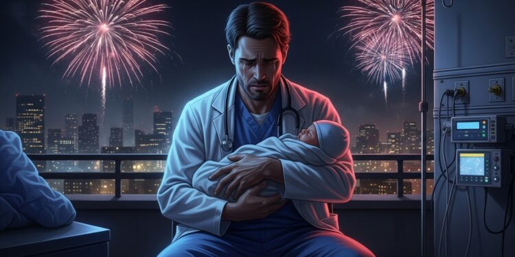 La réalisation alterne habilement entre plans serrés sur les visages fatigués et vues plus larges sur l’effervescence de l’hôpital. Les feux d’artifice apportent une touche poétique, contrastant avec la rudesse des urgences. La musique, discrète mais présente, accompagne parfaitement les moments émotionnels sans jamais en faire trop.