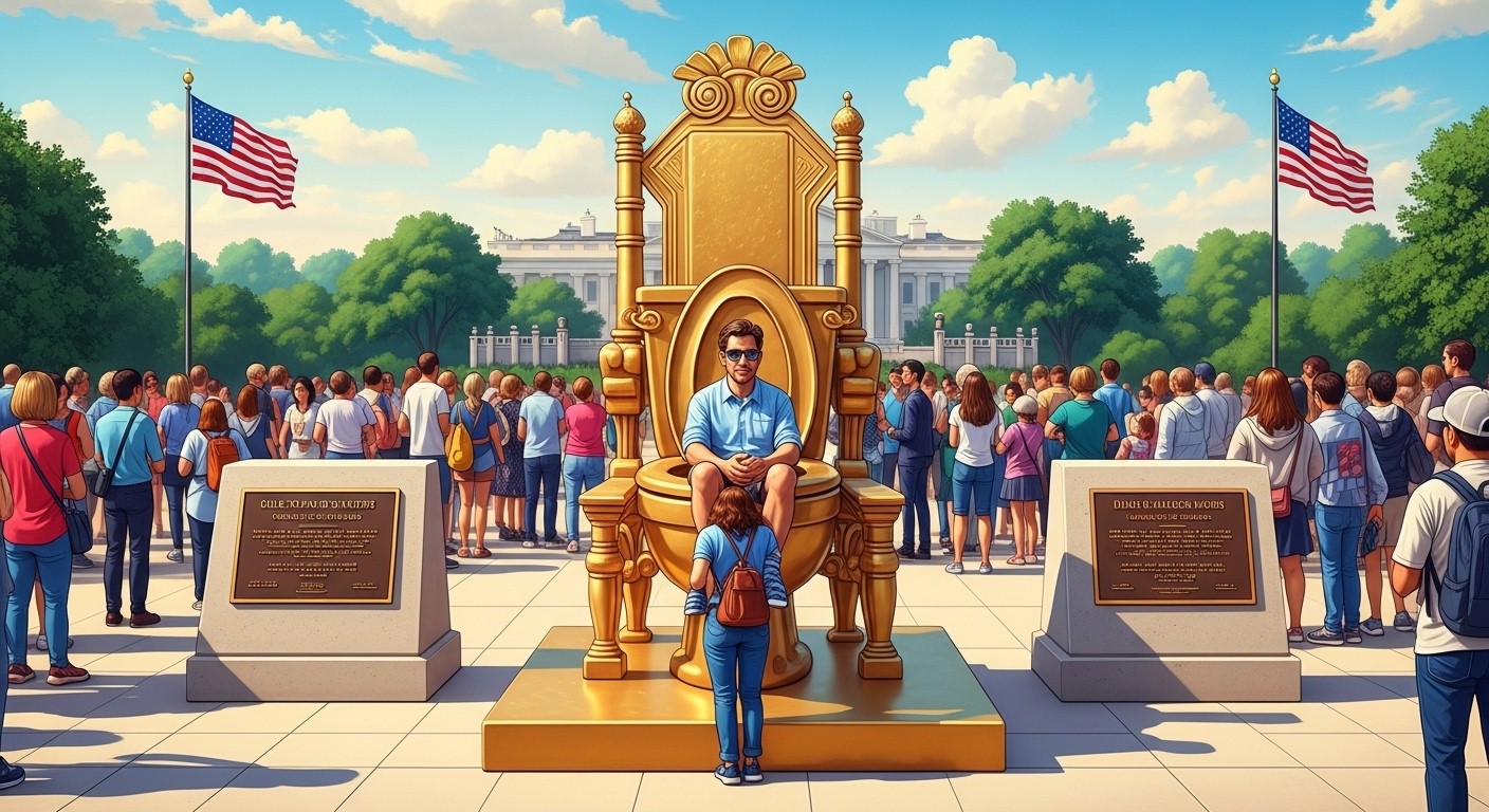 Imaginez-vous déambulant sur le National Mall à Washington, cet immense espace vert chargé d’histoire, lorsque soudain une file de curieux attire votre regard. Au centre, une imposante structure dorée trône fièrement, invitant les passants à s’y asseoir pour une photo mémorable. Cette scène insolite n’est pas une attraction touristique ordinaire, mais une provocation artistique qui cible directement les choix esthétiques du président américain.