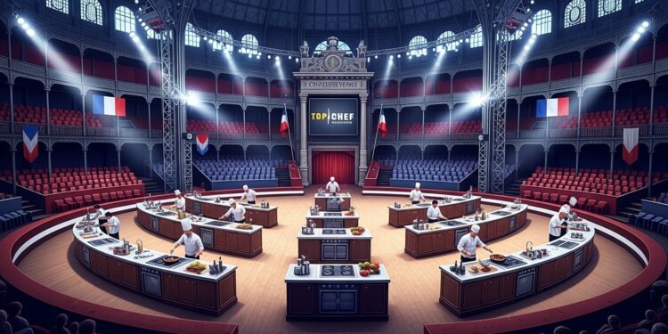 Pour cet épisode spécial, la grande salle de spectacle se transforme en véritable kitchen arena. Les cuisines sont installées au cœur de la rotonde, créant un cadre intime et intense où chaque geste des candidats sera scruté par le public présent et les caméras. Imaginez les odeurs de cuisson se mêlant à l’atmosphère feutrée d’un lieu habituellement dédié aux arts vivants : un contraste saisissant qui promet des images télévisuelles inoubliables.