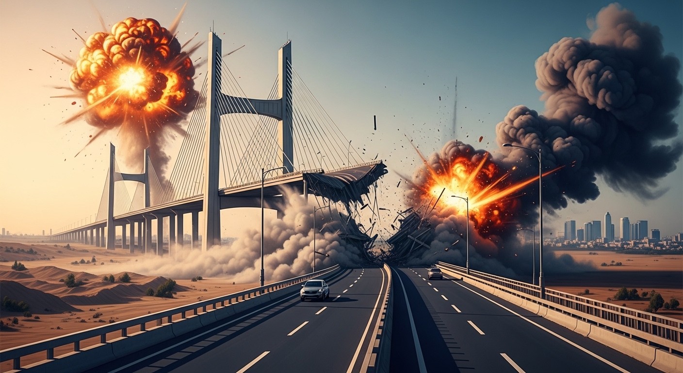 Imaginez un pont imposant, l’un des plus hauts du Moyen-Orient, qui s’effondre soudainement dans un nuage de poussière après une série de frappes. Cette scène, capturée en vidéo, a été partagée par le président américain lui-même, marquant un nouveau chapitre dans les tensions qui secouent la région.