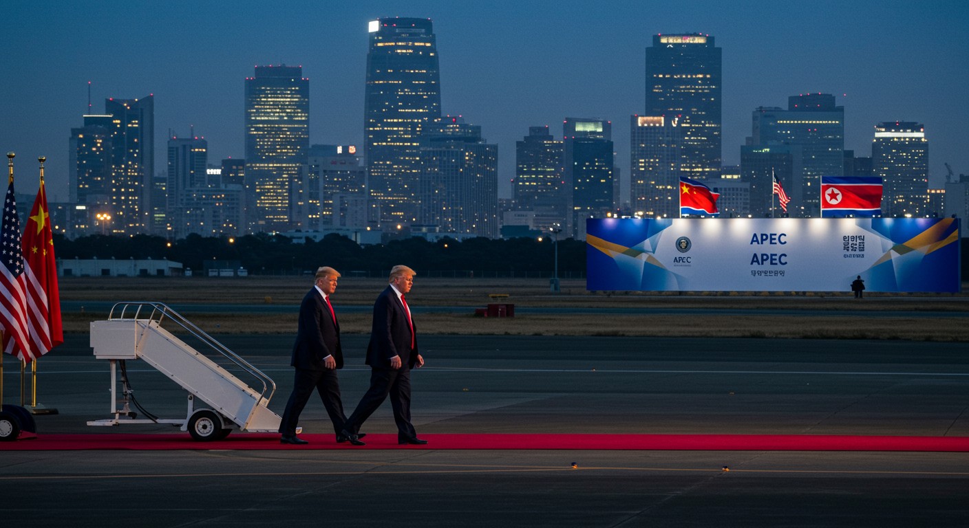 Imaginez un instant : un avion présidentiel fend les nuages au-dessus de la mer de Chine orientale, portant à son bord un leader connu pour ses déclarations imprévisibles. C’est le 29 octobre, et Donald Trump touche le sol sud-coréen, prêt à plonger au cœur d’un sommet économique qui pourrait redessiner les contours de l’Asie-Pacifique. Cette visite, annoncée avec tambours et trompettes, n’est pas qu’une simple escale diplomatique ; elle cristallise les fractures d’un monde en ébullition, où commerce, missiles et négociations secrètes se télescopent dans un ballet géopolitique haletant.