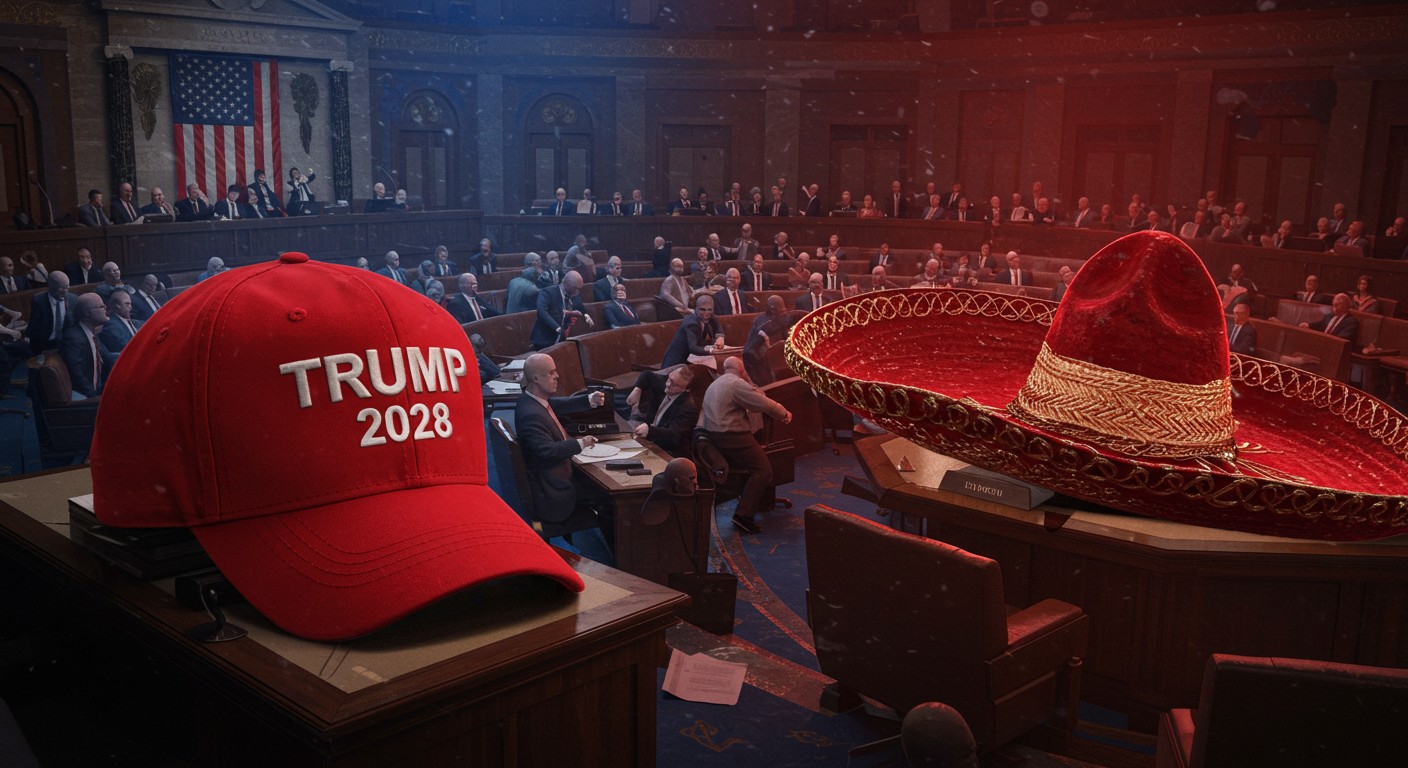Donald Trump, fidèle à son style, ne se contente pas de négocier dans l’ombre. Lors d’une réunion avec les leaders démocrates Hakeem Jeffries et Chuck Schumer, il a choisi d’exhiber des casquettes rouges marquées « Trump 2028 », une provocation subtile mais calculée. Ce clin d’œil à une hypothétique candidature – interdite par la Constitution – a été qualifié d’étrange au possible par Jeffries. Mais ce n’était que le début. Sur sa plateforme Truth Social, Trump a partagé une vidéo générée par IA montrant Jeffries affublé d’un sombrero et d’une moustache, un montage qualifié de raciste par le principal intéressé.