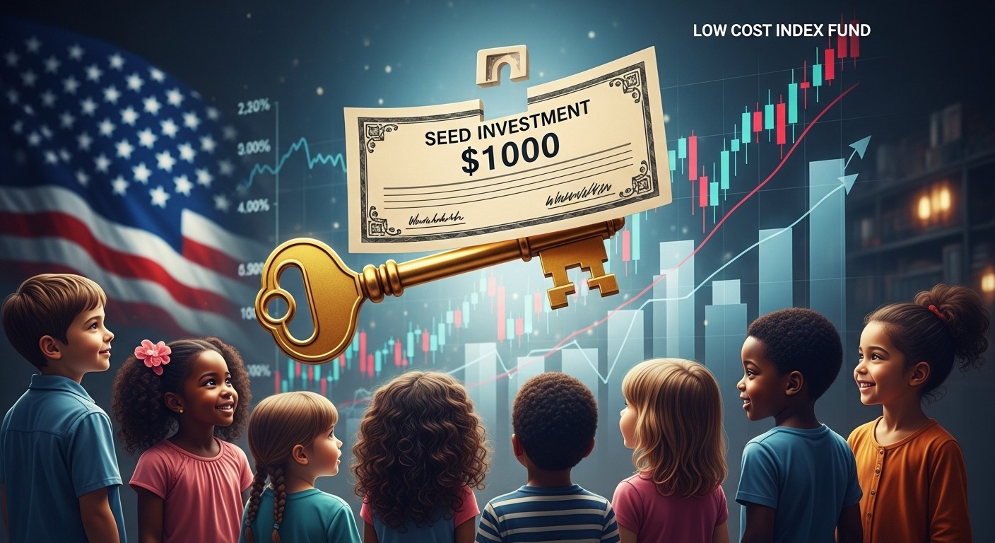 Le concept repose sur une mécanique simple en apparence : un versement unique de 1000 dollars par enfant, placé dans un portefeuille composé principalement d’indices boursiers larges. L’objectif affiché est double : initier très tôt les jeunes à la puissance des intérêts composés et réduire les inégalités d’accès au capital.