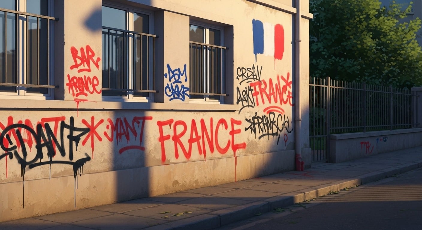 Le quartier concerné, connu pour ses difficultés sociales, a vu ses murs extérieurs transformés en quelques heures en support d’un discours virulent. Les inscriptions, rédigées en lettres capitales et visibles de loin, n’ont laissé aucun doute sur leur cible : la nation française dans son ensemble. Cet événement, loin d’être anodin, soulève de nombreuses questions sur le climat actuel dans certains territoires.