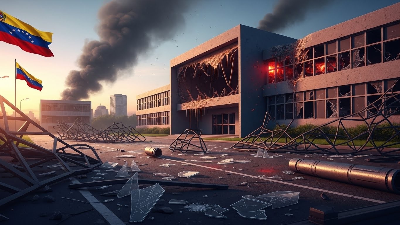 Les images diffusées présentent un site jonché de débris : bris de verre partout, structures métalliques fondues, et même des fragments identifiés comme provenant d’un missile de type AGM-154. Quatre autres bâtiments de l’IVIC auraient également subi des dommages collatéraux.