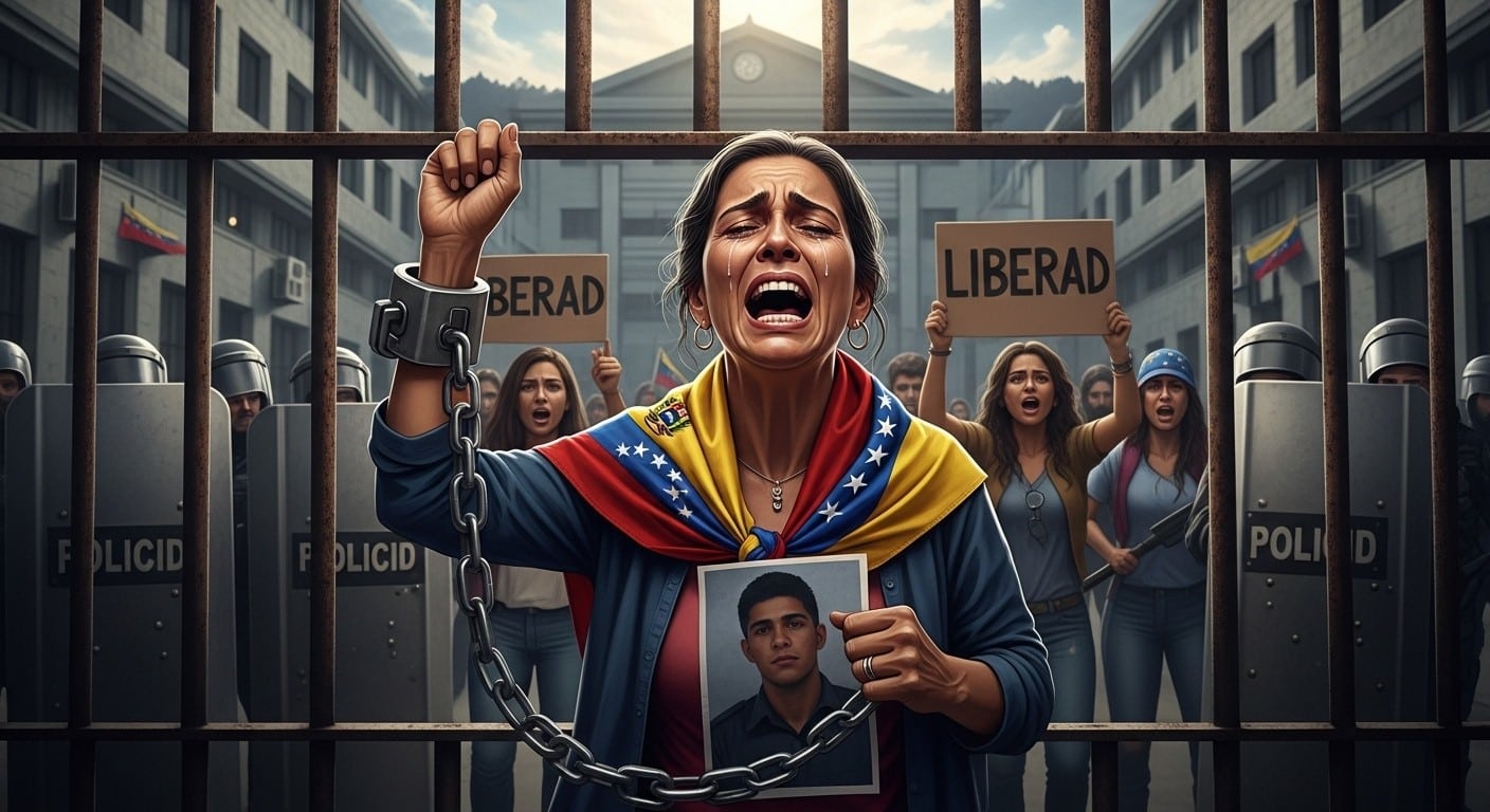 Dans l’ombre froide d’une prison vénézuélienne, une femme d’une quarantaine d’années lève le poing, une chaîne épaisse enroulée autour de son poignet. Son cri déchire le silence : elle est prête à mourir pour obtenir la liberté de son fils. Cette scène, saisissante, résume à elle seule la douleur qui ronge des centaines de familles au Venezuela en ce début d’année.