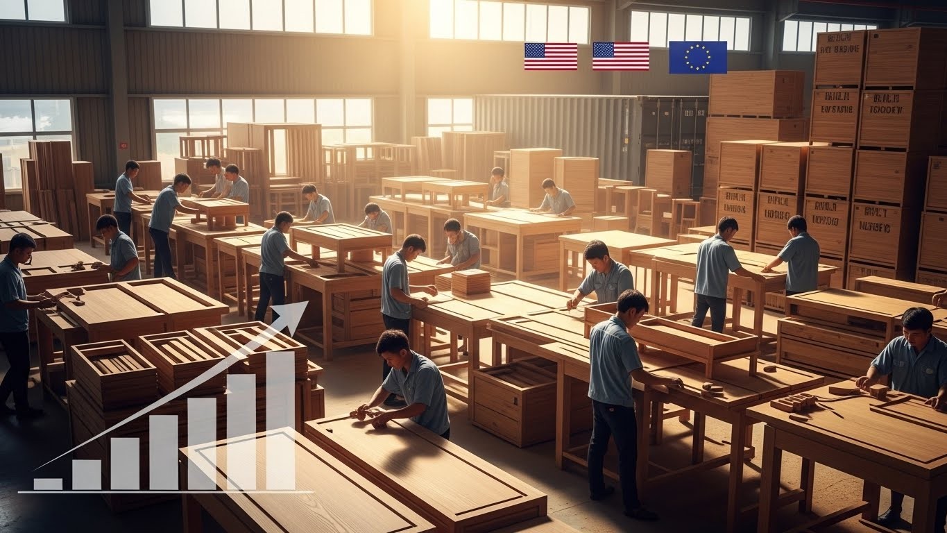 Imaginez une immense usine dans le sud du Vietnam. Le bruit incessant des scies et des ponceuses remplit l’air, tandis que des centaines d’ouvriers s’activent avec précision pour assembler des meubles luxueux destinés à des hôtels prestigieux et des résidences privées aux quatre coins du monde. Ces pièces élégantes prennent le chemin des États-Unis, de l’Europe et du Moyen-Orient sans que les récents droits de douane américains ne viennent perturber la cadence.