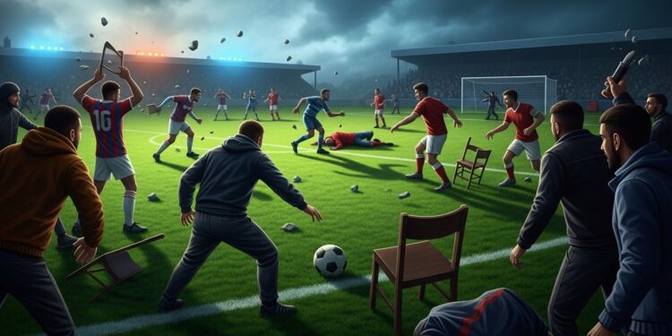 Les vidéos qui circulent sur les réseaux sociaux montrent une scène de chaos total : des individus courant sur la pelouse, des coups échangés, des personnes au sol. Le match est immédiatement interrompu par l’arbitre, incapable de maintenir l’ordre.